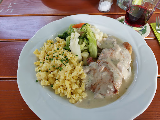 Das vorerst letzte Mal! Obwohl im Biergarten wenig Betrieb herrscht und vier Servicekräfte zur Verfügung stehen, warteten wir ab dem Zeitpunkt der Bestellung geschlagene 15 Minuten auf zwei Getränke. Bei der Essensbestellung wird insgesamt FÜNF! Mal in freundlichem Ton deutlich gemacht, dass der Bacon-Cheese Burger aufgrund einer Unverträglichkeit keine Zwiebeln beinhalten soll. Der sichtlich überforderte Kellner brauchte dann knapp fünf Minuten, um unsere Zwei-Personen-Bestellung aufzunehmen. Nach überschaubarer Wartezeit werden dann erst mal zwei Zwiebelrostbraten serviert, wovon jedoch nur einer bestellt wurde. Dies war dem Herr geschuldet, der bei der fünfminütigen Aufnahme des Essens ein Steak zu viel bestellte - kein Problem, Fehler passieren. Schließlich wird dann nach kurzer Wartezeit der Burger nachgeliefert, allerdings mit Zwiebeln. Nachdem der zuständige Kellner darauf aufmerksam gemacht wurde, wird der Teller ohne Entschuldigung oder dergleichen angesäuert und ohne Kommentar mitgenommen. Der Burger wurde daraufhin neu zubereitet, was widerum 15 Minuten dauerte. Der Burger wurde dann von einer feundlichen Kellnerin serviert. Leider fehlte allerdings der in der Karte angepriesene Coleslaw. Nach kurzer Nachfrage wurde uns mitgeteilt, dass dieser heute nicht vorrätig wäre und daher ein gemischter Salat als Ersatz serviert worden wäre. Der Salat wurde aber nie serviert. Auch die Nachbartische waren sichtlich genervt von den langen Wartezeiten. Ein Nachbartisch bestellte 1/8 vom Grünen Vertliner. Obwohl die Getränkeausgabe völlig frei war, dauerte es 15 Minuten bis sie ihr Wein serviert wurde. Da der Aufenthalt bis dato ein Reinfall war, entschließen wir uns zu zahlen, wobei der Kellner dann direkt wurde. Patzig und unfreundlich werden wir gefragt, ob wir noch nie Fehler gemacht hätten und dass wir bei McDonald's besser aufgehoben wären. Die Art und Weise des Kellners mit dieser Situation umzugehen ist an Unprofessionalität und Lächerlichkeit nicht zu überbieten. Anstatt sich die eigenen Fehler, auf die wiederholt freundlich hingewiesen wurde einzugestehen und eigenständig nachzubessern, wurde mit uns soweit diskutiert, dass uns körperliche Gewalt durch den besagten Kellner angedroht wurde. Leider zeigte sich auch die Gastwirtin von der Kritik wenig interessiert und verteidigte den Kellner sogar, wahrscheinlich aus Angst auch noch die letzte Hilfe zu verlieren. Dass das Lokal über einen Mangel an qualifiziertem Personal verfügt, ist über die Ortsgrenze hinaus bekannt. Scheinbar hat die Wirtin es notwendig ungeschultes und rufschädigendes Personal zu beschäftigen. Von der korpulenten und kritikunfähigen "Servicekraft", der seine Gäste von oben herab behandelt, sollte man sich dringend trennen, um nicht noch mehr Gäste dauerhaft abzuschrecken. Wir empfehlen nach momentaner Lage einen Bogen um diese Gaststätte zu machen, es sei denn man steht darauf ewig auf sein Essen zu warten und angepöbelt zu werden. Schade, da die Gaststätte bis vor Kurzem noch wirklich empfehlenswert war und auch das Essen immer noch gut...