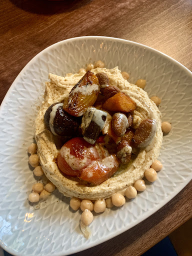 First time visiting this place and I can totally recommend it. The service was super nice, and even if they were super busy, they took care of us, and were always friendly and asking if everything is okay. The food was delicious. First, we had shared humus with red pepper, and this one was super smooth and full of flavour. Definitely one of the best humus I had in Europe. Next time, we rally like to try out more of their Mezze. Afterward, we had two main, a Tajine with lamb, almond, and roasted veggie, that was super good, full of flavour jot too dry or soaked. Also, we had the chicken with roasted chicken, Mozzarella, covered by baked bread. I loved it. The bread was fluffy and delicious. The chicken was juicy and also well balanced with the veggies.