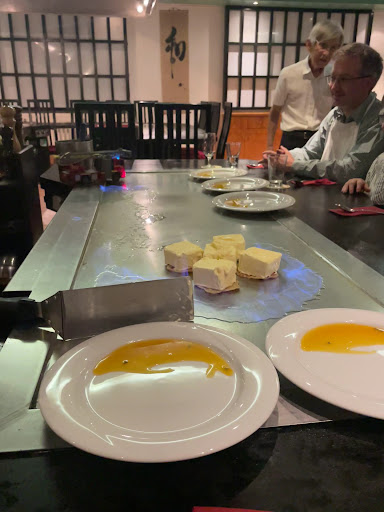 Read moreHier wurde ich gestern zu meinem Geburtstag zum Essen aufgeführt und ich muss sagen, es war ein absolut tolles Erlebnis. Das Essen war super lecker; alles hat mir geschmeckt, war gut gewürzig, es war frisch und perfekt portioniert. Ich hatte das Akane-Menü und habe das Rindfleisch mit den Meeresfrüchten ausgetauscht. Da ist das Restaurant sehr flexibel und geht auf alle wünsche des Kunden ein. Der Besitzer ist ein sehr freundlicher, älterer Mann der sehr fit für sein Alter ist. Er bringt den gewissen Charme rein. Das Personal war humorvoll, die Darbietung konnte man besser nicht machen. Die Arbeitsweise ist absolut sauber und gründlich. Zum Ambiente kann ich sagen, dass es manchmal laut war, aber dafür kann der Besitzer/das Restaurant nichts, da es an den Gästen liegt. Auch waren wir am Anfang etwas beirrt, dass wir mit vielen fremden Gästen an einem Herd/Tisch sitzen müssen. Wir hatten aber tolle Sitznachbarn und haben miteinander gelacht. Da muss man aus seiner Komfort Zone raus und auch mal was Neues ausprobieren. Mit meinem Menü und die von meinem Partner waren wir rundum glücklich und können es für Fleisch-Liebhaber/Seafood Liebhaber auf jeden Fall empfehlen!
