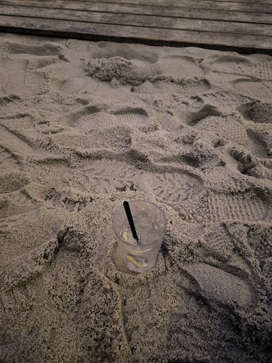 Der Ort erinnert an einen Strand: ein Holzweg führt vom Eingang zur Bar, es gibt Sand, Liegestühle und Plattformen, auf denen man liegen kann. Noch besser wäre es, wenn es mehr Sonnenschirme gäbe – nicht überall ist Schatten vorhanden.