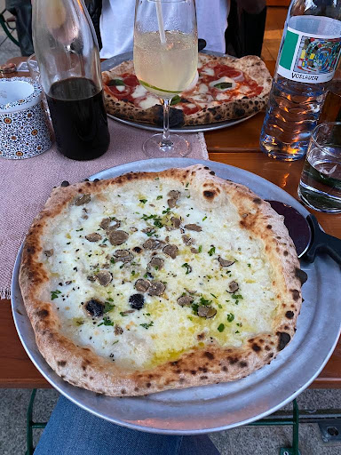 Read moreThe location is great (in the city, facing this very cute plaza with a fountain); the terrace is nice, inside the restaurant is very charming with a "theatrical" dining room (colourful wall paintings, clothes drying, very high ceilings, etc) and a more romantic dining space underground; but I was a bit disappointed with my pizza (Sally ball). I found it just a bit boring as, for me, the onions were not caramelized and the burrata was cold and not creamy... I was missing a bit of flavour in general. On the positive note, my friend had the Truffle pizza that she liked very much- to her liking a bit more Truffle and that pizza would have been excellent 😋 We also shared a tiramisu and some drinks that we enjoyed very much. The service was nice and timely. The manager was very open to listen to our comments that make us really want to go back soon and try one of his suggestions (Johnny sausage or Pauly walnut) 😊 In general, we had a nice evening. 🍕🍹