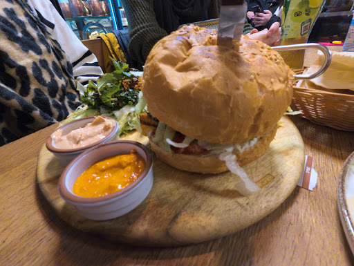 Das Grillgemüse war teilweise komplett verbrannt und ungenießbar, die Soßen zum Großteil, auch der Hummus fad.
