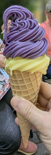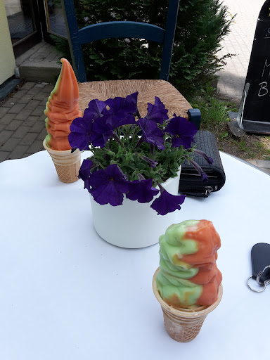 Wir haben hier an einem Samstagnachmittag im April angehalten. Es war nur für Straßenverkauf von Softeis geöffnet. Der Innenraum war geschlossen, draußen sitzen war möglich. Die Eisportionen sind dem Preis angemessen. Uns hat das kleine (siehe Foto) gereicht, das große Eis ist doppelt so groß wie das Kleine. Sorten waren bei uns Schoko, Vanille, Heidelbeere und Apfel. Schoko-Vanille hat gut geschmeckt, Apfel-Heidelbeere nach Bekundung unsrer Begleitung auch. Die Konsistenz war auch gut, wie es sich für Softeis gehört - nicht zu weich, nicht zu fest.