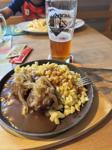 Read moreWaren heute aufgrund des ĂŒberall gelobten mittagsangebot da! Habe mich und mein Kumpel fĂŒr den zwiebelrostbraten mit SpĂ€tzle entschieden, was leider ein Riesen Fehler war! Zwiebelrostbraten war ein StĂŒck aus der Keule und zĂ€h wie Leder, klar bei dem super Preis von 12,90 kann man kein Mega Steak erwarten, aber ein StĂŒck von der Keule das gar kein Rumpsteak ist?? Bin Metzger und kann es beurteilen, das StĂŒck war höchstens 100g schwer! Rostbraten ist ja bekanntlich ein StĂŒck vom rĂŒcken, heiĂt Roastbeef oder Rumpsteak, aber so ein mickriges StĂŒck von der Keule hab ich so noch nirgends gesehen! Beilagen in Ordnung! Service freundlich ! Waren beide eigentlich sehr enttĂ€uscht! Bin Metzger und kann ein Steak von einem braten StĂŒck unterscheiden!! Schade eigentlich! Klar man kann nicht sonst was erwarten bei dem Preis, aber wenigstens ein kleines zartes Steak sollte wenigstens drin sein und nicht ein derartiges zĂ€higes sonstwas! Werden mal irgendwann die anderen mittagsgerichte probieren und hoffentlich da einigermaĂen zufrieden sein! Schade eigentlich, netter Platz und freundlicher Kellner und doch so ne...