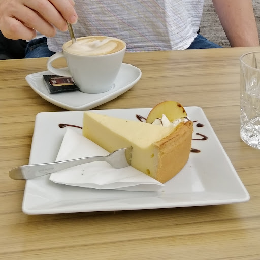 Positiv ist eindeutig der Rest. Lecker Kuchen und ein toller Cappuccino. Der Kaffee soll auch gut gewesen sein. Der Kirschstreusel hatte einen tollen Boden unf einen super Nachgeschmack. Der Apfelkuchen soll auch gut gewesen sein. Beide Kuchen waren ansprechend dekoriert. Preislich war das auch in Ordnung. 4 Kaffee bzw. Cappuccino und 2 Kuchen etwa 17 Euro. Etwas Feinarbeit beim Service und in dem Raumbereich und der 5....