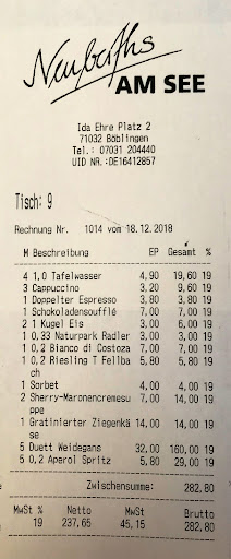 Read moreDiese Rezension betrifft nicht das Restaurant in Böblingen. Sondern den Betreiber/ Pächter des Freibad in Schönaich. Seit diesem Jahr sind sie Neuer Pächter im Waldfreibad Schönaich. Anfangs war ich positiv angetan. Was den Außenbereich betrifft. Helle Bestuhlung brachten ein schönes Ambiente ins Bad. Was mich und viel andere Besuche als störend empfunden wurden und durch die Badeaufsicht auch bald abgestellt wurde. Die Durchsagen" Jutta einmal Pommes". Auch das Abfragen des Namens ist bei der Bestellung ist etwas unkonventionell . Ein Abreißzettel mit Nummer ist hier angebracht. Ein offen stehender 5l Behältnis Mayonnaise/ Ketchup bei 30 Grad ist eher etwas für den WkD. Jeder schöpft hier mit einem Löffel mehr oder weniger kontaktlos im Behälter. Auch die Ketchup Flaschen sind doch ecklig. Für ein Catering Unternehmen nicht würdig. Ein Pumpen Aufsatz würde das hygienischer erscheinen lassen. Ein Hinweis Schild wo sich die Ausgabe befindet hat schon beim vorigem Pächter große Ansammlungen vermieden. Die anfängliche Servier Ständer für Pommes Frietes empfand ich als praktikabel und wertig . Diese sind ebenfalls verschwunden. Leider leidet auch die Sauberkeit an und unter den Tischen. Diese aufgeführten Start Probleme sind schon vielen ins Auge gefallen und haben zu Unmut geführt. Doch nicht nur negatives sollte ans Licht kommen. Die Größe und der Geschmack ihrer Pommes sind zu erwähnen. Wie auch die selbstgemachten Maultaschen mit K-Salat können geschmacklich und preislich ein Lob bekommen. Vielleicht können Sie etwas zur...