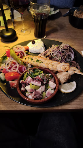 Essen solala. Grillteller (über 20 Euro) sind ohne Beilage (noch nicht mal Reis) außer einem kleinen Salat und ohne Zaziki - was teuer dazu gekauft werden muss, wobei unser Gyros auf dem Teller so trocken, krümelig und geschmacklos (ungewürzt) war, dass man es ohne nicht runter bekam. Auf unsere Frage ob es kein Tarama gibt, kam die Rückfrage, was ist das. Also hier ist noch viel Luft nach oben und das bezieht sich auf die gesamte Rezession bezüglich der Speisen Essen, nicht nur auf das fehlende Tarama (was ich finde, peinlich ist, wenn es in einem griechischen Lokal nicht nur nicht angeboten wird, sondern noch nicht mal bekannt ist).
