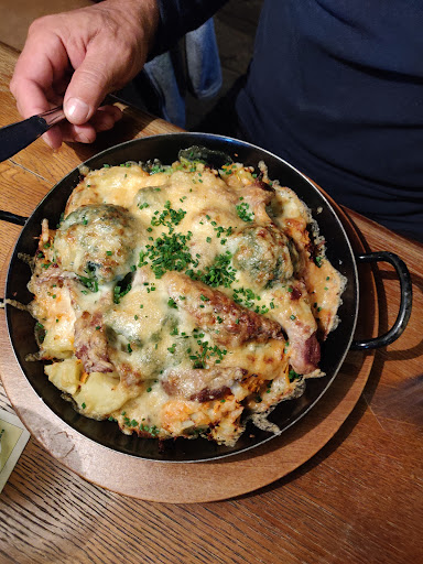 Read moreDer Name ist Programm. Im Restairant "Die Knolle" gibt es Alles, was das Kartoffel-Herz begehrt. Von Pommes über Röstis bis hin zu sehr leckeren Bratkartoffeln ist alles abgedeckt. Die Portionen sind ausreichend und sättigend, die Preise für diese Mengen angemessen, selbst die Getränke bekommt man bis zu einer Menge von 0,5 Litern, zumindest was Nichtalkoholisches angeht. Das Ambiente ist urig und gemütlich. Das Kartoffelhaus befindet sich in einem alten Bauernhaus, eventuell war es mal ein großer Stall. Holzbalken und Lehmkartuschen bestimmen das Bild. Alte Eimer und Bottiche wurden zu Lampen umfunktioniert, die Deckelanlage eines Bierbrauerkessels dient als Glaslager und Überdachung für den Bar-Bereich. Die Bedienungen sind nett und zuvorkommend, auch wenn es etwas länger dauert, ihre Aufmerksamkeit zu bekommen, wenn man am Ende zahlen will, was aber eher an der Größe und Verwinkelung der Räumlichkeiten liegt. Die Wartezeit auf das Essen variiert, je nachdem, wann man dort aufschlägt. Bei größeren Gruppen solltem an unbedingt Plätze reservieren, wenn man nur zu zweit ist, bekommt man auch locker so einen Platz, zumindest vor 20 Uhr, selbst unter der Woche. Auch die Lage des Gasthauses besticht. Direkt am Wasser gelegen, in einer ruhigen Zone der Stadt - im Sommer definitiv entspannend. Der Biergartenbereich ist zwar nicht sonderlich groß, man sollte sich also beeilen in diesen Zeiten, aber besticht durch einen tollen Blick auf den Fluss und die gegenüberliegende Uferseite.