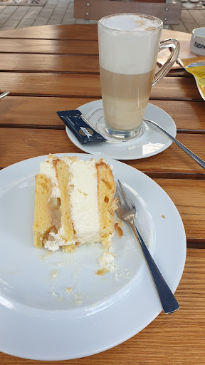 Read moreFast wären wir daran vorbei gefahren. Ein großes Schild an der Hauptstrasse läßt hinter einer alten Bruchstein Mauer nur erahnen, was sich dort hinter verbirgt. Im ersten Moment ein recht moderner Platz. Aber sofort fällt das alte Fachwerk auf. Vielleicht ein ehemaliger Stall, der herrlich umgestaltet wurde.Durch die große Eingangstür aus Glas im passenden Stil, geht es im innern mit der Zeitreise weiter. Abgelenkt wird man aber sofort durch die große Tortenauswahl. Weiter geht es bei schönem Wetter auf eine ebenso stilvolle Terrasse, die zusätzlich auch von außen zu erreichen ist. Kaffee und Kuchen passen wunderbar zum Ambiente. Ein Highlight. Ich komme...