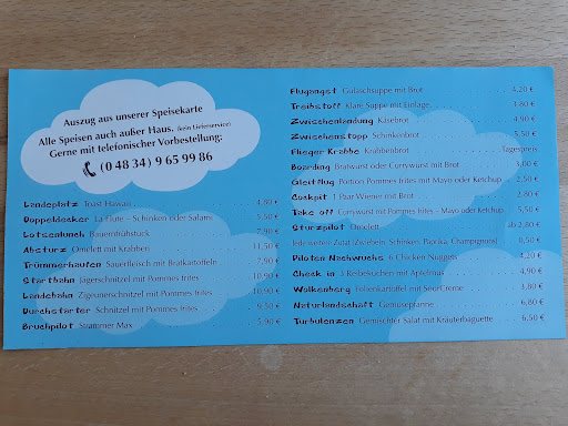Read moreEin nettes gemütliches Restaurant am Flugplatz Heide Büsum. Das Personal ist sehr freundlich und hilfsbereit. Bei schönem Wetter ist es ein ganz tolles Ausflugsziel, weil man während des Essens von der Aussenterasse aus die Flugzeuge, deren Piloten und Startvorbereitungen beobachten kann. Wir haben heute je drei Starts und Landungen gesehen. Die Preise sind angemessen, ich hatte die scharfe Currywurst mit Pommes für unter 9,-€. Sehr...