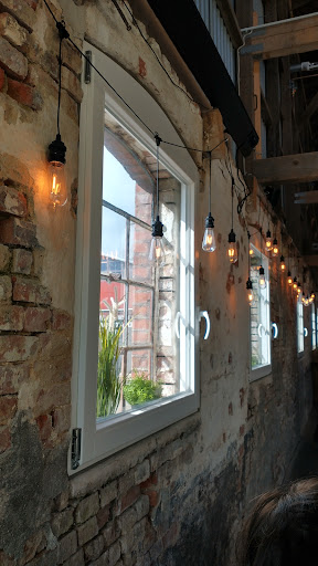 Wir sind ohne große Erwartungen gekommen und waren dann sehr überrascht von der Gemütlichkeit hier und dem modernen Vintage-Ambiente. Bis hin zu den modernen und behindertengerechten Badezimmern und der ordentlichen Auswahl an Torten, Limonaden und Heißgetränken war alles stylisch und hervorragend. Preise sind fair. Parkplätze gibt es auch ausreichend, und eine Boulderhalle und ein Kletterpark gehören ebenfalls dazu, da haben die Kleinen reichlich was zu tun. Draußen sitzt man schön in der Sonne an Tischen oder in Strandkörben. Durch das geräumige Ambiente und die weit auseinander stehenden Tische haben es auch problemlos Hunde gemütlich hier. Es gilt das Prinzip Selbstbedienung, aber Kartenzahlung ist problemlos möglich. Mit anderen Worten: Erwartungen weit übertroffen!...