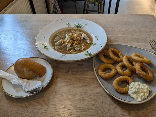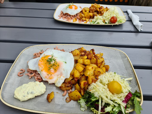 Read moreWir waren dort zum Essen(sehr unbequeme Sitzhocker).Bedienung machte einen gestressten Eindruck. Wartezeit bis wir unser Essen bekamen noch so gerade im Rahmen(25 min.). Ich hatte gebratenen Seelachs mit Bratkartoffeln und Remoulade,mein Mann hatte Calamaris mit Pommes. Der Fisch war auf den Punkt gegart,aber sehr fettig. Die Bratkartoffeln waren auch zu fettig,und versalzen.Einzig die Remoulade war sehr lecker. Kleine Portion Calamaris(6 Ringe) und die Pommes waren nicht lange genug in der Friteuse,sehr hell und auch versalzen.Also wir gehen dort...