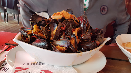 We took shelter from torrential rain here and I had the fish cake roll with remoulade because I love what is essentially fish scraps and it was excellent. We don't eat cold cooked fish much at the seaside in Britain so it's always slightly surprising to me but this was great and the remoulade was outstanding. Unfortunately, No Coeliac friendly food so nothing for him. There is almost nothing he can eat out across Northern Germany but if Gosch just had a separate fryer and the cross contamination awareness, we'd all be able to eat. Then advertise it on your website and coeliacs would flock to you....