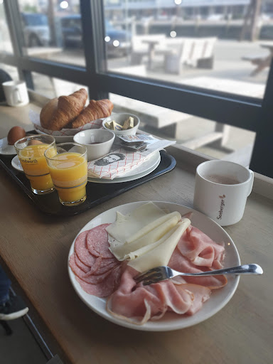 Read moreWir wollten eigentlich nur einen Kaffee trinken und unsere Postkarten schreiben und das eigentlich auch schnell. Dank dem freundlichen Personal blieben wir etwas länger, warum nicht. Ich bin bei Automatenkaffee sehr wählerisch allein schon wegen dem Geschmack und Stärke. Hier hat es gepasst selbst der Brownie war super. Ein tolles Lokal schon vom Ambiente her. Ich nahm an das es mal eine alte Fischhalle gewesen ist was die Fliesen bis unter die Decke vermuten ließ. Weit gefehlt, es war laut Erklärung schon immer eine kantone und man hat zur Deko ein Teil der Fliesen mit Absicht angeschlagen. So kann man auch auf alt trimmen und das ganze dann samt Einrichtung im Industrielook erstrahlen lassen. Preisleistung empfanden wir für einen Touristen Ort mehr als angepasst. Meckern können somit andere......wir können nur...
