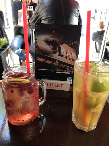 Wir waren heute zur Feier eines 40. Geburtstags in der Haifisch Bar in Büsum. Die Getränke allen voran die Cocktail schmeckten allen sehr sehr gut. Ich persönlich bin von einem Caipirinha auf einen Louisiana, also das selbe Getränk, aber anstelle eines Cahaca mit Southern Comfort umgeschwenkt und war total begeistert und kann dies jedem weiter empfehlen. Der Barmann, der die Cocktails müsste verstand etwas von seinem Handwerk! Daneben haben wir ein paar Shots Kamikaze, eine Williamsbirne, zwei Stille Wasser, Prosecco, und jeweils 1x Pina Colada, Mai Tai sowie Cosmopolitan getrunken. Allen haben die jeweiligen Getränke sehr gut geschmeckt. Die Bedienung war sehr locker und gut drauf. Das hat auch sehr gut gepasst. Wir haben nur zwei kleinere Mankos zu bemängeln: Die Bedienung die menschlich sehr gut drauf war, war noch recht neu, was er uns sehr erzählte und kannte die Karte nicht gut genug. Konnte daher auf ein paar Nachfragen nicht direkt antworten Zudem gibt es nichts zum Essen: eine große Karte verlange ich in einer Cocktailbar überhaupt nicht, aber es gab keine Snacks, keine Knabbereien, gar nix. Das ist etwas schade, da die Getränke wirklich sehr gut sind und sich der Laden mit kleineren Snacks selbst einen großen Gefallen tun würde. Trotzdem gibt es von uns eine volle Empfehlung für die...