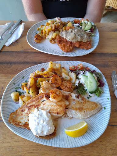 Read moreVorweg, das Essen war gut, nichts Besonderes, aber gut. Leider hört es dann aber schon auf. Der Service war sehr unfreundlich und wenig entgegenkommend, auf die Frage, ob wir bei der Currywurst die Soße und die Pommes auf getrennten Tellern haben könnten (die Tochter hat Diabetes und muss die Kohlenhydrate wiegen), kam zuerst "Nein, das wäre zu viel Aufwand" und dann "Ja, aber nur gegen Aufpreis, weil das wäre ja nicht üblich". Wenn Sohnemann nicht gerne Fish & Chips gehabt hätte, wäre ich da schon wieder gegangen. Dann hat leider mein Google Pay beim ersten Mal nicht funktioniert und sofort kam, "Das Problem liegt bei Ihnen, bei uns hatte noch nie jemand Probleme." Es kann durchaus sein, dass das Problem bei mir und meinem Handy lag, aber trotzdem möchte ich so etwas als Kunde nicht hören. Sogar mein kleiner Sohn fragte, warum die Frau so unfreundlich sei. Kurz und gut, der Außenbereich war nicht sehr sauber, überall die Ringe und Flecken der Voresser auf dem Tisch, Spinnweben und Spinnen inklusive.