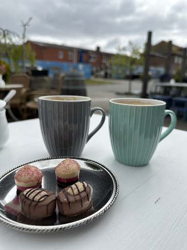 Read moreLecker Kaffee trinken und selbstgemachten Kuchen essen oder einfach mal eine leckere Praline dazu.... Bei schönem Wetter draußen sitzen und die Sonne ☀ genießen.... Bei schlechtem Wetter wird es mit den Plätzen schlecht da nicht genügend vorhanden sind... Das Personal ist sehr freundlich und zuvorkommend.... Leider gibt es keine Möglichkeit den getrunkenen Kaffee wieder zu entsorgen..... Es ist keine Toilette vorhanden und Menschen die einen Rollstuhl haben oder auch ältere Menschen mit einem Rollator oder Gehilfe sind auf Hilfe angewiesen da der Zugang nicht Behindertengerecht ist.... Ansonsten sehr zu...