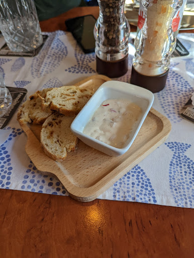 Zuerst wird einem ein hausgemachter Dip gereicht, der wirklich super lecker zu dem selbstgemachten Brot gepasst hat. In den insgesamt drei Besuchen gab es u.a. Lachstatar, Krabbencocktail, sowie ein leckeres Schollengericht und einen super leckeren Burger oder Filet vom schwarzen Heilbutt. Zum Nachtisch gab es dann an unterschiedlichen Tagen Leckereien in Form von Kuchen oder einer selbstgemachten Crème brûlee.