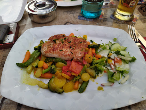 Zum Essen wir hatten zwei mal Fisch, bei 24€ fand ich meine Portion etwas klein und ich hatte noch Hunger. Rotbarsch mit Gemüse und Salat. Vom Geschmack sehr gut aber nicht außergewöhnlich.