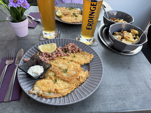 Read moreOh man, eine derbe Enttäuschung. Wie kann man nur ohne Leidenschaft Essen zubereiten? Alles Fertigessen, auch der Salat, dafür brauche ich nicht in ein Restaurant gehen! Nichts frisch gemacht. Kartoffelsalat kam warm und mit Speck. Beides war nicht auf der Karte ausgewiesen. Bratkartoffeln haben sie nicht ohne Speck laut Bedienung - wieder ein Indiz dafür, dass sie nicht frisch gemacht werden. Gehen nicht auf Kundenwünsche ein. Erklärung für den Kartoffelsalat war: er wird mit Speck gemacht und warm, weil er sonst zu schnell kippt????? Fisch schmeckt fade, ist nicht mal gesalzen. Saßen auf der erhöhten Ebene. Bedienungen sind viel zu bequem, um auf die Ebene zu kommen, um zu bedienen, wie es korrekt wäre. Sie bedienen umständlich von unten und kommen nicht mal richtig ran. Dazu ist die Küchentür immer offen. Der ganze Gastraum riecht nach altem fett. Haben extra frische Sachen zum Essen gehen angezogen, können jetzt alle in die Wäsche... so haben wir halt auch in die Küche sehen können, wie lieblos und ungesund dort das Essen zubereitet wird. In Büsum kann man viel besser und leckerer Essen gehen. Künstliche Pflanzen als Deko auf den Tischen hängen einem während des Essens im Gesicht herum. Traurig, dass sowas als Restaurant...
