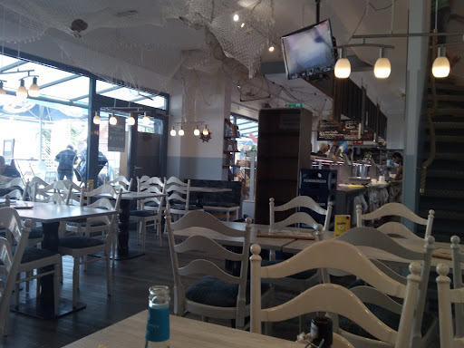Das Fischgeschäfte liegt direkt am Hafen an einer kleinen urigen alten Werft. Man hat die Möglichkeit den SB Bereich zu wählen für zB. ein Bier und ein Fischbrötchen auf die Hand und sich direkt in der Lounge am Hafen zu Setzen oder in den Innenbereich sich nett bedienen zu lassen. Das Personal ist sehr nett und immer nen Spruch auf Lager, den Kindern hat es auch gefallen. Das Essen fanden wir sehr gut und ausreichend. Die Preise in der heutigen Zeit war mehr als angemessen. Da haben wir auf Büsum für weniger und schlechteres essen mehr zahlen müssen. Das Fischgeschäft können wir wärmstens empfehlen.