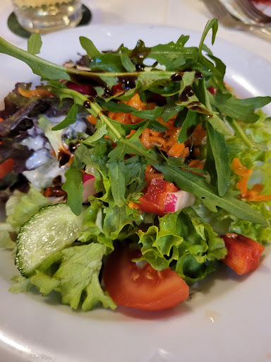 Read moreMittagstisch viel Potential nach oben. Essen war in Ordnung, der Service leider nicht so. Es dauerte alles insgesamt sehr lange. Wir kamen um die Mittagszeit. Draußen ist ein großer Aussteller, mit dem der Mittagstisch (3 Gänge) beworben wird. Wir bekamen nur die normale Karte, nach der Mittagskarte musste man gezielt fragen. Und dann gibt es noch eine Tafel, die am Tisch aufgestellt wird. Insgesamt also sehr viele Menüs. Wer welches Menü zu sehen bekommt, entscheidet anscheinend der Kellner. Als ich nach dem Mittagsmenü fragte, wurden uns zwei Vorspeisen und zwei Hauptgerichte, die zur Auswahl standen genannt. Das dauerte dann alles etwas lang, Gäste die nach uns bestellten, bekamen ihr Essen vor uns. Der Kellner räumte irgendwann ab und es war nichts von Dessert zu sehen und zu hören. Ich fragte nach der Rechnung und die kam dann auch, allerdings auch da keine Rede von Dessert oder Kaffee. Also der dritte Gang ist anscheinend die Rechnung. Schade! Das war in unseren Augen - gewollt aber...