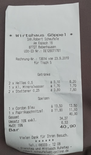 Urgemütliches Wirtshaus mit Biergarten, der Über Generationen von der FamilieGöppel betrieben wurde und anschließend von Robert „Tarzan“ Scheufele fortgeführt wird. Alles was hier die Küche verlässt, kann durch die Bank als sehr gut ,fein und bester Qualität bezeichnet werden. Von schwäbischer Küche z.B. Sauerbraten, kalbsbraten , Zwiebelrostbraten bis hin zu feinen Salaten und italienisch angehauchten Gerichten ist hier alles zu haben. Auch die „ Kleinen“ kommen hier nicht zu kurz. Zudem ist das Preis -/ Leistungsverhältnis fair . Lokal ist immer gut besucht und beliebt. Von mir absolute...