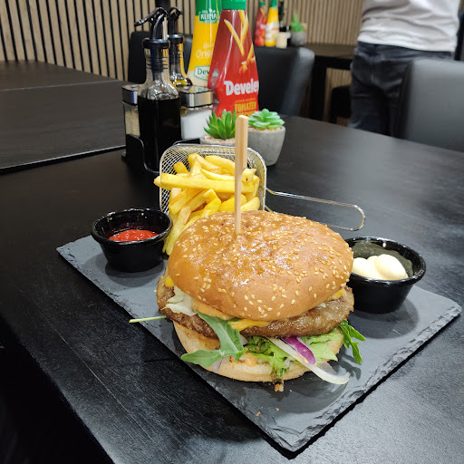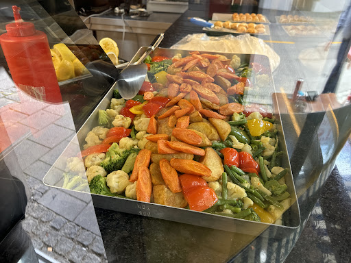 Das Ambiente ist sehr schön gestaltet für ein Imbiss und vor allem sauber. Toiletten sind auch vorhanden.