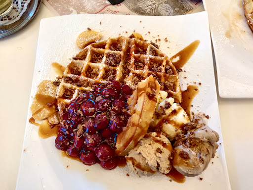 Read moreCame for the waffles, stayed and returned a bunch of times for the atmosphere, the super friendly and accommodating service and the fantastic tea selection. Tea lovers will not be disappointed! The artisan ice cream is a marvel; not only the cakes but also the ingredients such as nougat and puff pastry are homemade. There is also a selection of savoury dishes and snacks, such as the soup of the day and Strammer Max.