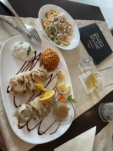 Seating and ambiance was okay. The service (waitress) was okay too. The food was not that good. Vorspeisen : carpaccio definitely was from the freezer because it was very watery and tasteless. Octopus was okay, the tzaziki was just plain yoghurt on a plate with 2 snips of carrot. Maincourse : Rumpsteak with redwinesauce, I ordered rare but it came done, and sauce wasn't reduced but watered down which made it tasteless. Schweinemedaillon with champignoncreamsauce, meat was very dry and hard and the sauce was totally not creamy. The Gyros came with a strange redlooking dressing which made the gyros not tasting like gyros should taste and it was a real small portion (like for a kid). The lambchops with garlicsauce was a disaster, first they brought something else and then when they brought what we ordered the others were almost done with their food, the lambchops were dry and the garlicsauce was like a bouillon with some bits of garlicpuree. So far the food. There was 1 good waitress, she seemed to be dutch (blond young woman) and 1 mediocre german waiter (blond thinning hair), the others need a lot of basic training, like dont put your thumb on the plate and serve from the side it should be served and not hand a plate over the...