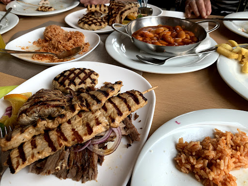 Als das Essen endlich kam, war aber das Gyros zur Hälfte verbrannt. Obwohl ohne Zwiebeln bestellt, waren Zwiebeln dabei (konnte man natürlich zur Seite tun). Der Klecks Zaziki war für die Portion Fleisch deutlich zu wenig. Das kennen wir leider auch inzwischen aus anderen griechischen Restaurants. Das Bifteki war blass und schmeckte nach nichts. Den Kampf zwischen Metzger und Bäcker, der bei Frikadellen oft ausgefochten wird, schien eher der letztere gewonnen zu haben. Wir hatten zu beiden Gerichten Reis bestellt, serviert wurden Pommes. Der Reis wurde immerhin nachgeliefert (wohl schnell in der Mikrowelle erhitzt).