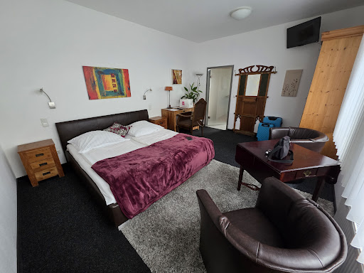 Read moreSo ein Fauxpas ist mir im Leben nicht untergekommen. Mein Freund und ich waren auf einer Hochzeitsfeier eingeladen. Wir haben erst per Mail eine Anfrage gestellt. Da die Antwort sehr knapp und nicht all unsere Fragen beantwortet waren, haben wir angerufen. Das Telefonat verlief dann besser. Dann sind wir in unseren Urlaub gefahren und auf dem Rückweg zur Hochzeitsfeier gefahren. Als wir ankamen standen wir vor verschlossener Tür. Völlig verwirrt haben wir uns im Hof umgesehen um zu schauen ob es einen anderen Eingang gab. Ein weiteres Pärchen mit Gehbehinderung wollte genau wie wir einchecken. Alle anrufen waren Vergebens. Das Pärchen ist erstmal in ein anderes Restaurant und wir mussten mit Reisebekleidung zur Hochzeitsgesellschaft. Zwei stunden später sind wir wieder hin. Das Hotel/Restaurant hatte dann geöffnet. Nachdem wir uns ausgesprochen hatten, warum wir vor verschlossener Tür standen, wies er uns nur auf die Öffnungszeiten hin, die auf der Internetseite standen. Wir waren sauer, da per Mail und am Telefon uns keiner was davon erzählt hatte. Nun gut, dann sagte er uns, dass das Hotel voll sei und er ein zweites Pendant hat gegenüber der Kreuzung und als Entschuldigung bekommen wir eine Flasche Wein. Völlig entsetzt haben wir uns das zweite Pendant erstmal angeschaut. Die Frau am Empfang, hat versucht sein Spiel mitzuspielen und hat uns erstmal ein Zimmer gezeigt (dritt klassik) und der Preis lag weitaus unter dem, welches wir dennoch an Tonino bezahlt hätten. Stinksauer sind wir wieder zurück gegangen und haben auf ein Zimmer bei Tonino verlangt. Wir haben ja schließlich auch zwei Bestätigungen bekommen gehabt. Urplötzlich ist ja dann doch ein Zimmer für uns frei. Dann fing er plötzlich an sich einzuschleimen und meinte ja ach "Señora, Señora sie bekommen gleich zwei Gläser Sekt auf ihr Zimmer." Dann sind wir sauer auf das Zimmer und haben uns erstmal fertig gemacht für die Hochzeitsfeier und wollten dann los. Dann kam der Geschäftsführer nochmal und hat sich wieder versucht einzuschleimen und hat mir seinen Arm um die Schulter gelegt, ich habe mich dann versucht da raus zu kommen, aber er hat meine Schulter so festgehalten das es mir gar nicht möglich war. Er hat uns einen so wunderschönen Abend gewünscht und wollte das wir auf den Tischen tanzen. Dann sagte er noch "Los Señora, Señora lächeln sie für mich" und mir war so gar nicht zu Lächeln zumute, hab es aber gemacht damit er endlich meine Schulter los lässt. Dann hat er noch meinem Freund dermaßen einen "Schulterklopfer" verpasst, der einen Satz nach vorne gemacht hat. Wir sind einfach nur Kopfschüttelnd zu der Hochzeitsfeier und haben uns davon nicht weiter beirren lassen. Am nächsten morgen war er zum Glück nicht da...