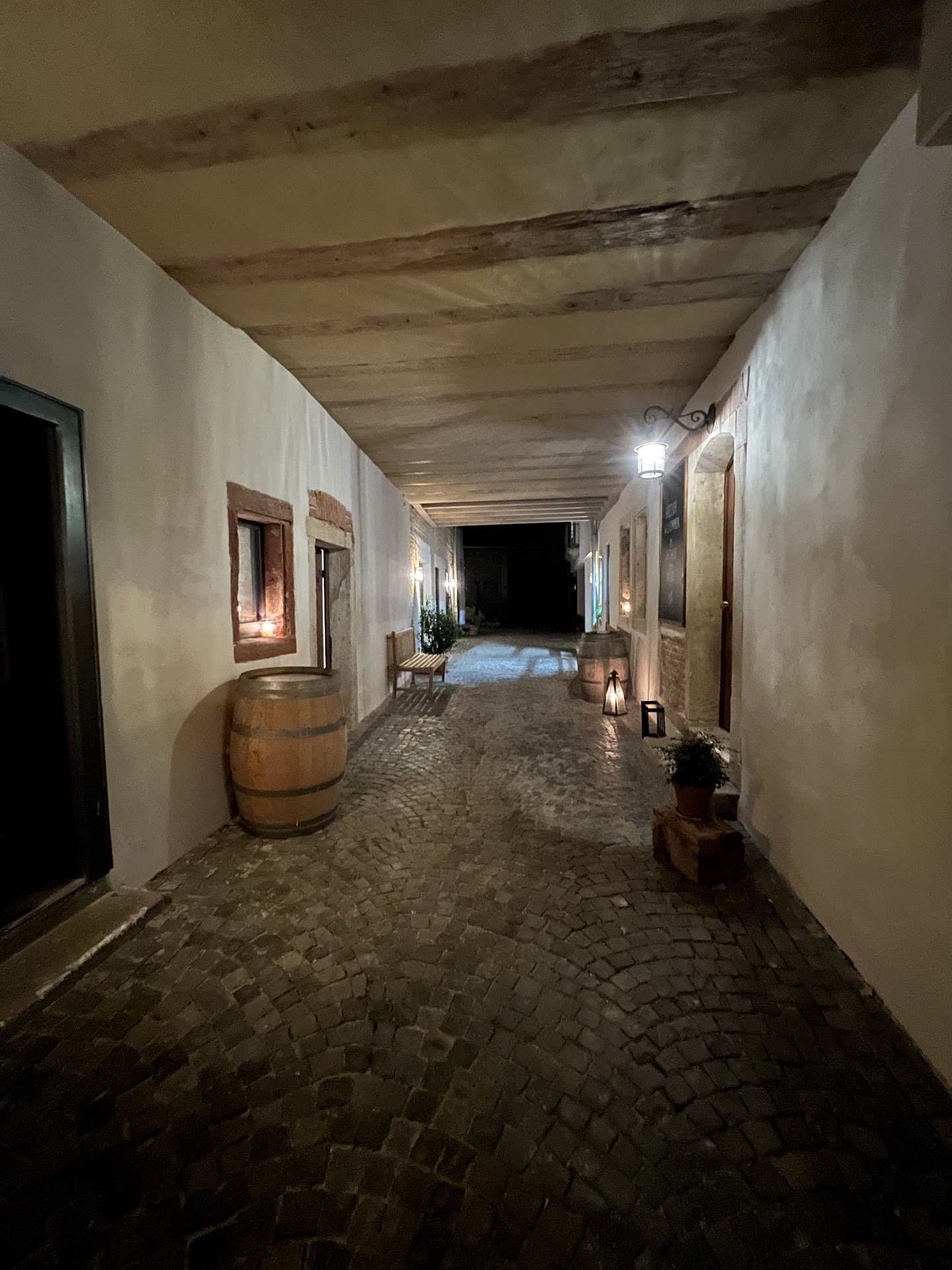 Nice sparkling wine (Riesling from the region of course) and very berryish Merlot from the village.