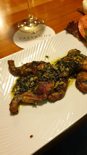 Ein sehr schönes Weinlokal mit sehr guten Weinsorten. Ein SUPER schönes, wahrhaftig 7 Minuten Pils wird wunderbar mit schöner Schaumkrone gezapft. Was ich nur Empfehlen kann ist die Knoblauchsuppe. Eine, nicht nur von Knoblauch dominierte, sondern mit "Geschmackseplosionen" gestickte Cremesuppe, in die ich liebend gerne kleine dargereichte Brotstücke zerkleinert beifügen. Der Salat zu den Steaks ist variationsreich gestaltet und schmeckt NICHT nach Fertigdressing. Ich habe im übrigen zwei Fleischvariationen hier gegessen. Das Californiasteak ist wirklich gut! Ich bin KEIN Rezessionenschreiber, der Dienstleister zerreißt. Wirklich nicht!!! Tabernus ist ein sehr angenehmes Lokal, das vielleicht in einigen Jahren schließt, weil die Wirtin (äußerst nett, aber man merkt ihr an, daß sie mit Ihrer Küchenkraft alleine ist) einfach kein Familiennachfolge hat. Das finde ich sehr sehr schade. Man wird in der Gastronomie kein Millionär mehr, aber ein Lokal wie die Tabernus würde allen, die sie weiterbetreiben, ein normales Einkommen generieren (bei gleicher Qualität und Freundlichkeit!!!!). Es gibt Gerichte, die ich mir anders vorstelle, aber Geschmäcker sind verschieden. Dennoch, ein riesen Lob an die Wirtin und die Küchenkraft und ein großes Dankeschön für die Freundlichkeit.