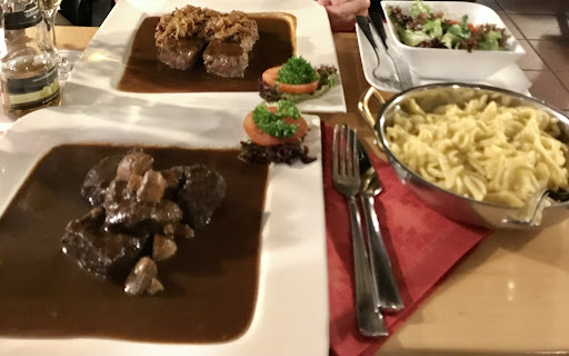 Read moreWir waren am 22.12. hier essen. Leider waren alle Plätze reserviert. Bis auf einen kleinen Tisch am Kamin oder die Theke hat uns die Bedienung (vermutlich die Chefin) angeboten. Wir haben dann an dem kleinen Tisch platz genommen. Das Ambiente ist urig und schön eingerichtet. Mir gefällt so etwas. Die Bedienung war sehr freundlich. Unser bestelltes Essen war recht zügig da. Wir waren bis kurz nach der Bestellung auch die ersten Gäste. Nach kurzer Zeit kamen aber schon die Gäste der reservierten Tische. Da die Bedienung viele mit Namen begrüßte, gehen wir davon aus, dass es alles Gäste aus der Region waren. Das Essen war sehr schmackhaft. Das Fleisch auf den Punkt gegart und die Portionen waren mehr als ausreichend. Die Spätzle waren, soweit ich das beurteilen kann, von Hand gemacht. Wir waren mit allem sehr zufrieden. Die Preise sind nach meinem auffassen angemessen. Das einzige was mich störte war, dass das Rindfleisch nicht aus der Region kommt sondern aus Argentinien. Sollten wir noch mal in der Region sein, kommen wir gerne noch...