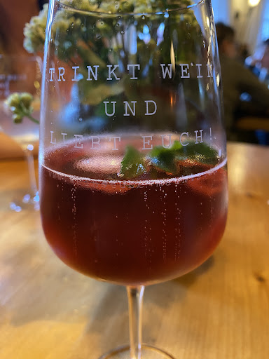 Read moreEine typische kleine Weinstube mit langer Tradition. Der Service ist immer sehr authentisch, aufmerksam und nett. Der Wein schmeckt mir immer gut (Milder Mathis). Im Sommer sitzt man im schönen Innenhof. Der Slogan, den man überall lesen kann "Trink Wein und liebt Euch" kommt sehr gut an. Es gibt sogar Gläser, T-Shirts usw. damit zu kaufen. Auch wenn die Stube gemütlich wirkt, zieht es dort im Winter leider, zumindest jedesmal, wenn die Tür zum Vor- oder Nebenraum geöffnet wird, was leider recht häufig der Fall ist. Hier wünscht man sich eine Lösung. Beim Essen gibt es einige Klassiker, die immer hervorragend schmecken, z.B. das Königskottlet oder die Kastaniensuppe (saisonal). Mein Essen (Rehragout), war leider relativ schnell kühl, da wohl der Teller nicht vorgewärmt war (dafür war die Suppe umso heißer). Die Spätzle als Beilage zum Ragout wirkten nicht selbstgemacht. Ansonsten war es gut, aber für die Portion auch sehr hochpreisig. Was ich nicht verstehe ist, dass es in der heutigen Zeit noch Gaststätten gibt, in denen man nur bar zahlen kann und keinen Kassenbeleg bekommt. Also immer dran denken, genug Bargeld...