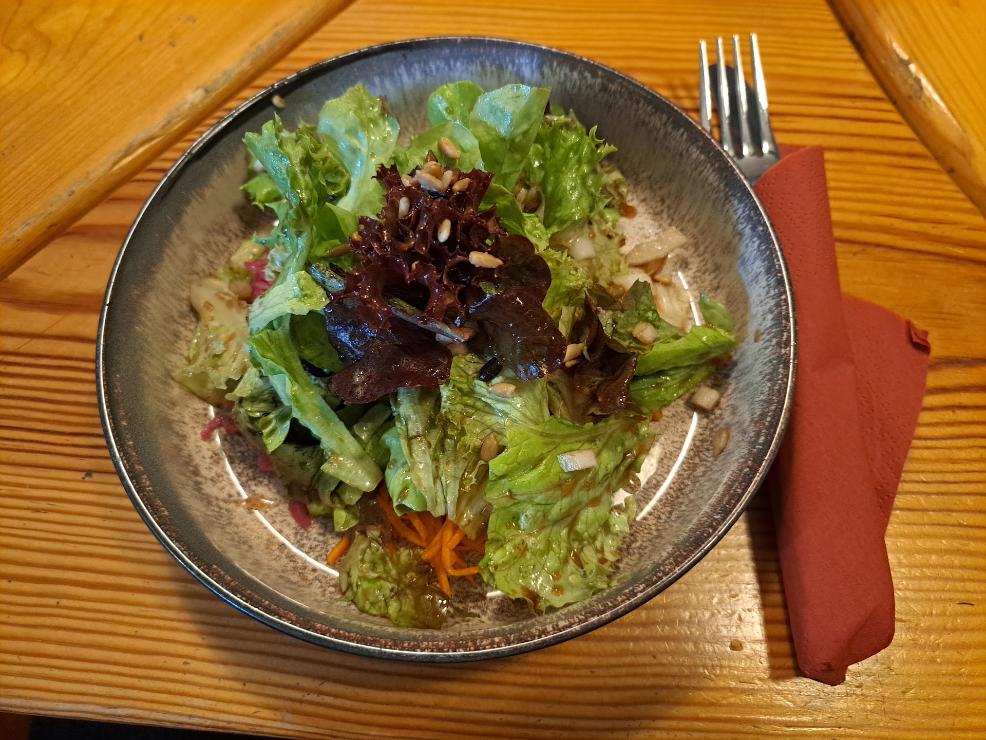 Sehr zu Empfehlen: Essen: Sehr gut- Vorspeise Grumbeersuppe- sehr fein, mit leckerem Kartoffelbrot, speck und Crountons, der Beilagensalat mit Essig Öl war ebenfalls sehr schmackhaft, auch der meiner Frau mit Kartoffel Dressing. Hauptgang- das war absolut super cordon bleu, mit Bergkäse und Schinkenwürfeln- kannte Ich so nicht- sehr gut, Fleisch sehr lecker und ebenso die Füllung- Pommes sehr gut. Das Rumpsteak meiner Frau war auch sehr gut gemacht- die Beilage Bratkartoffeln äusserst lecker- wie bei Oma, dazu Karotten-denke gedünstet- sehr sehr lecker. Nachtisch- creme brulee echt gut gelungen- so wie es sein soll- auch das selbstgemachte Vanille Eis super. Rostige Ritter- mega Portion, gutes leckeres Kompott und feine Soße Ambiente: Angenehm, gemütlich, nicht zu gross nicht zu klein, einfach gemütlich. Service: Perfekt, freundlich, auch freundliche reaktion auf fragen. Wartezeiten sind vollkommen angemessen, es war nur 1 Servicekraft und 1 Koch da, dennoch ging es wirklich schnell Preis Leistung super- man bekommt sehr gutes Essen für einen...