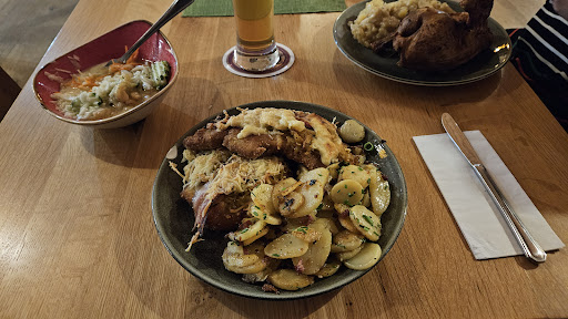 Read moreWaren heute zum Familien Essen! Gut besucht und laut! Kinderfreundlich kann ich nicht sagen! Für 2 jährige sah ich keinen Kinderstuhl auch sah ich keine Kinder Menüs auf den Tafeln! Zum nachfragen war keine Zeit! Massenabfertigung! Ein Glück hatte ich einen Teller und Besteck mitgebracht! Das unser kleiner von jedem etwas abbekam! Das Wildgulasch????? 4 Brocken Fleisch komisch Kruste daran und die Soße? zu viel und sehr sulzig und papig! Die Spätzle waren außergewöhnliche dazu selbst gemacht und sehr lecker nur Zuwenig dafür der halbe Teller voll mit Blaukraut und viel zu süß! Das halbe Hähnchen viel zu trocken! Ein Glück dass die Oma noch ihre eigenen Zähne hat! Käsespätzle sahen schon aus wie unaussprechlich! Salatsauce auch viel zu süß warscheinlich aus der Flasche! Nur die Schnitzelgerichte haben unsere Männer überzeugt! Die waren zahrt und geschmackvoll! Auch sehr große Portionen! 2 Schnitzel pro Teller! Für ein schnelles essen beim Wandern oder Wintersport ist es ein dementsprechendes Kantinen Essen! Als gemütliches gesmackvolles Familien Essen eher nicht zu empfehlen! Da auch die Preise es nicht...