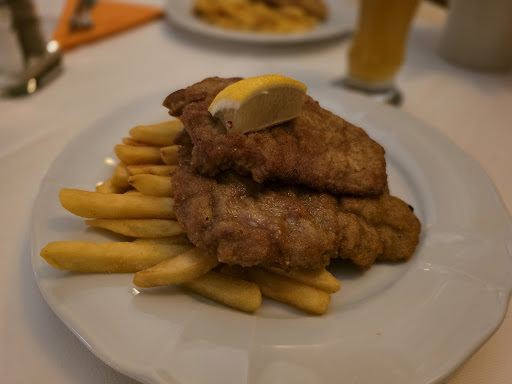 Zum Essen gibt es nicht viel zu sagen: Der Service ist bemüht Weizen gibt es vom Fass Das Essen für den gehobenen Preis leider nur durchschnittlich Panade vom Kalbsschnitzel klebte nass am Teller (Cordon Bleu OK) Pommes eindeutig TK Auf zwei Beilagensalate wurde eine - ja, eine (!) - Cherrytomate aufgeteilt. Rest waren Salatblätter und hömoopathische Mengen an Karotten und Kresse Popmusik (die irgendwann einfach aufgehört hat) als Musikauswahl ist natürlich auch etwas eigenwillig