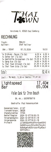 Read moreWunderbares Thai-Restaurant in einer super Lage in Bad Camberg-Erbach mit wunderschönem Außenbereich und Kinderspielecke drinnen. Das Essen ist perfekt. Ich bin sehr glücklich so ein gutes Thai-Restaurant vor Ort zu haben. Bevor das Lokal in die Erbacher Stubb eingezogen ist, mochten wir dort auch schon sehr gerne essen gehen. Die Betreiberinnen Wipada und Ying sind sehr nett und immer sehr aufmerksam, auch gegenüber den Kindern. Meine ältere Tochter hat zum Abschied immer Süßigkeiten von ihnen bekommen. Leider sieht man die wirklich sehr netten Frauen in dem größeren Lokal nicht mehr so oft, denn die Bedienung und der ToGo-Schalter werden mittlerweile vorwiegend durch Mitarbeiterinnen übernommen; nicht allen scheint die Arbeit im Servicebereich zu liegen. Vermutlich sind die Schwestern nun vorwiegend in der Küche bei der Arbeit und bereiten die wirklich sehr guten Speisen zu.