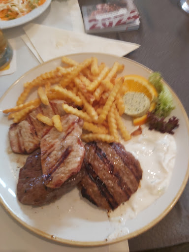 Das Ambiente innen ist ansprechend, sauber und einladend. Die Mitarbeiterin im Service sehr freundlich und aufmerksam. Das Essen kam recht schnell, war aber dennoch sehr frisch ( im Hintergrund hört man wie Fleisch geklopft wird 🥳) und sehr sehr schmackhaft. Die Zwiebeln auf dem Schnitzel oder Rumpsteak sind mal anders zubereitet als man es sonst gewohnt ist, aber geschmacklich so viel besser. Portionsgrösse war für uns perfekt, man hatte nicht das Gefühl überfüllt zu sein, sondern war angenehm satt. Wir haben im Vorfeld gesagt, das wir mit Gutscheinen ( 2 Essen zum Preis von 1 ) bezahlen möchten und auch das war überhaupt kein Problem. Wir hatten nicht das Gefühl, das dadurch die Portionen kleiner waren, so wie viele Benutzer dieser Gutschein Bücher von anderen Restaurants berichten. Preis Leistung ist optimal .