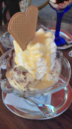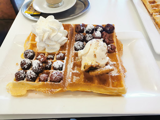 Read moreWenn ich Premium League Preise bezahlt haben möchte, die Qualität aber nur auf Kreisliga-Niveau liegt passt etwas nicht. Habe Frische Waffeln mit heißen Kirschen, jedoch ohne Vanilleeis und einen Espresso bestellt. Espresso war nach drei Minuten da, die Waffeln nach 15 Minuten, bis dahin wäre der Espresso leider nur noch kalt gewesen. Die Waffeln, nachdem sie endlich da waren, sahen lecker aus, die darauf gelegten Kirschen waren eiskalt. Habe mich beim Service beklagt, die Waffeln wurden zurück genommen, die Kirschen von den Waffeln "runtergepfückt", warmgemacht, wieder aufgelegt und erneut serviert. Die Waffeln waren jetzt unter den Kirschen matschig. Der Geschmack ging gerade noch. Abgerechnet wurde der volle Preis von 8,20 Euro, obwohl ich bewusst auf das Vanilleeis verzichtet habe, zunächst kalte Kirschen und danach matschige Waffeln bekommen habe. Fand ich jetzt nicht super, darf sich jedoch jeder ein eigenes Bild machen. Für mich steht schon mal fest, was ich nicht nochmal bestelle, sollte ich nochmal...