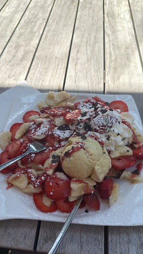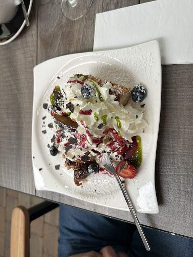 Read moreDer Kuchen war ganz ok (nicht mehr, nicht weniger) und schon allein die Darbietung auf dem Teller ein absoluter Hingucker! Sehr schön! Dennoch kann ich nur zwei Sterne geben, denn was das "Erlebnis" für mich so negativ gemacht hat, war: Es war proppenvoll, um nicht zu sagen völlig überfüllt, kein Zentimeter Platz (und das in Corona-Zeiten!), das Personal entsprechend angespannt und genervt - und vor allem: Wir haben über 40 Minuten auf unsere Bestellung (Kaffee & Kuchen) gewartet. Und an den anderen Tischen war es genauso - Wartezeiten bis zu einer Stunde. Sorry, aber das ist einfach unmöglich. Wenn uns das am Anfang jemand gesagt hätte, wären wir sicher nicht sitzen geblieben. Schmankerl am Rande: Als wir dann endlich an der Reihe waren, war der bestellte Kuchen aus und es musste umbestellt werden. Deshalb: Am Wochenende kann ich hier keinen Besuch empfehlen. Vielleicht sieht es unter der Woche anders aus. Aber ich gehe sicher so schnell nicht...