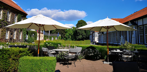 Read moreDer Park und das Hotel sind sehr schön, allerdings sind Hunde im Restaurant nicht erwünscht und uns wurde angeboten den Hund vorm Restaurant anzubinden. Trotz gähnender Leere warteten wir fast 15 Minuten auf die Getränke. Die Speiseauswahl ist klein, aber in Ordnung, die Speisen selber wiederum nicht. Wir hatten den Flammkuchen, der TK war, obwohl die Kellberin vorher versicherte, dass dieser das nicht sei. Der Salat mit Ziegenkäse 13,50€!, war eine Vorspeisenportion und Brot, welches sich als ein angeschnittenes Brötchen heraus stellte wurde erst auf Nachfrage serviert.Uns wurde auch erst auf Nachfrage eine Serviette gebracht. Als Dessert fragten wir nach Vanilleeis mit Eierlikör oder Baileys, auch das konnte nicht serviert werden, weil die Bar noch geschlossen war. Das süße Duo, welches aus einem Kaffee und einer Überraschung aus der Patisserie besteht, war ein Kaffee aus einem Vollautomaten (kein handgemachter Milchschaum!) und ein eiskaltes Stück Schmandkuchen auf den Zucker gestreut war. Sehr enttäuschend! Die Kellnerin hatte Flecken auf ihrer Uniform, war zwar ganz nett aber nicht besonders professionell. Außen Hui innen Pfui trifft hier...