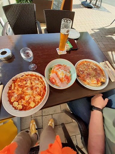 Read moreWir waren mit 5 Erwachsenen und einem Kind zum Essen hier. Wir wurden zwar direkt zum Tisch geführt, bis die Getränkebestellung aufgenommen wurde vergingen gute 20 Minuten. Da die Speisekarten, aber schon auf dem Tisch lagen konnten wir dann glücklicherweise auch direkt das Essen bestellen. Es stand zwar kein Kindergericht in der Karte, aber wir konnten ein Gericht wählen, wovon der Koch eine kleine Portion angerichtet hat. Auf das Essen mussten wir sehr lange warten. Nach ca eine Stunde kamen dann die Vorspeisen (Bruscetta, Brokkoli, Krabbencocktail), die auch gut geschmeckt haben. Die Hauptspeisen (Pizza, Calzone, Pasta und Rumpsteak) wurden nach einer kurzen Wartezeit ebenfalls serviert. Das Essen war geschmacklich nicht schlecht, aber auch nicht besonders gut. Leider war das Rumpsteak voll mit Fett durchzogen Ca. 1/4 davon konnte nicht gegessen werden. Wir haben darauf aufmerksam gemacht, worauf der Koch auch persönlich an den Tisch kam, was wir erst sehr gut fanden, weil die Kritik nicht einfach ignoriert wurde. Nur leider hat er sich überhaupt nichts davon angenommen und ziemlich unfreundlich geantwortet, er würde schon seit 30 Jahren kochen. Als wir dann nach der Rechnung fragten und sagten, dass wir getrennt zahlen möchten, wurden wir gefragt, ob wir nicht einfach die Rechnung in der Mitte teilen können. Wir haben weder eine Entschuldigung, noch eine Entschädigung bekommen. Aufgrund dessen haben wir kein Trinkgeld gegeben. Nach dem Zahlen ist die Dame dann einfach verschwunden ohne sich zu verabschieden.