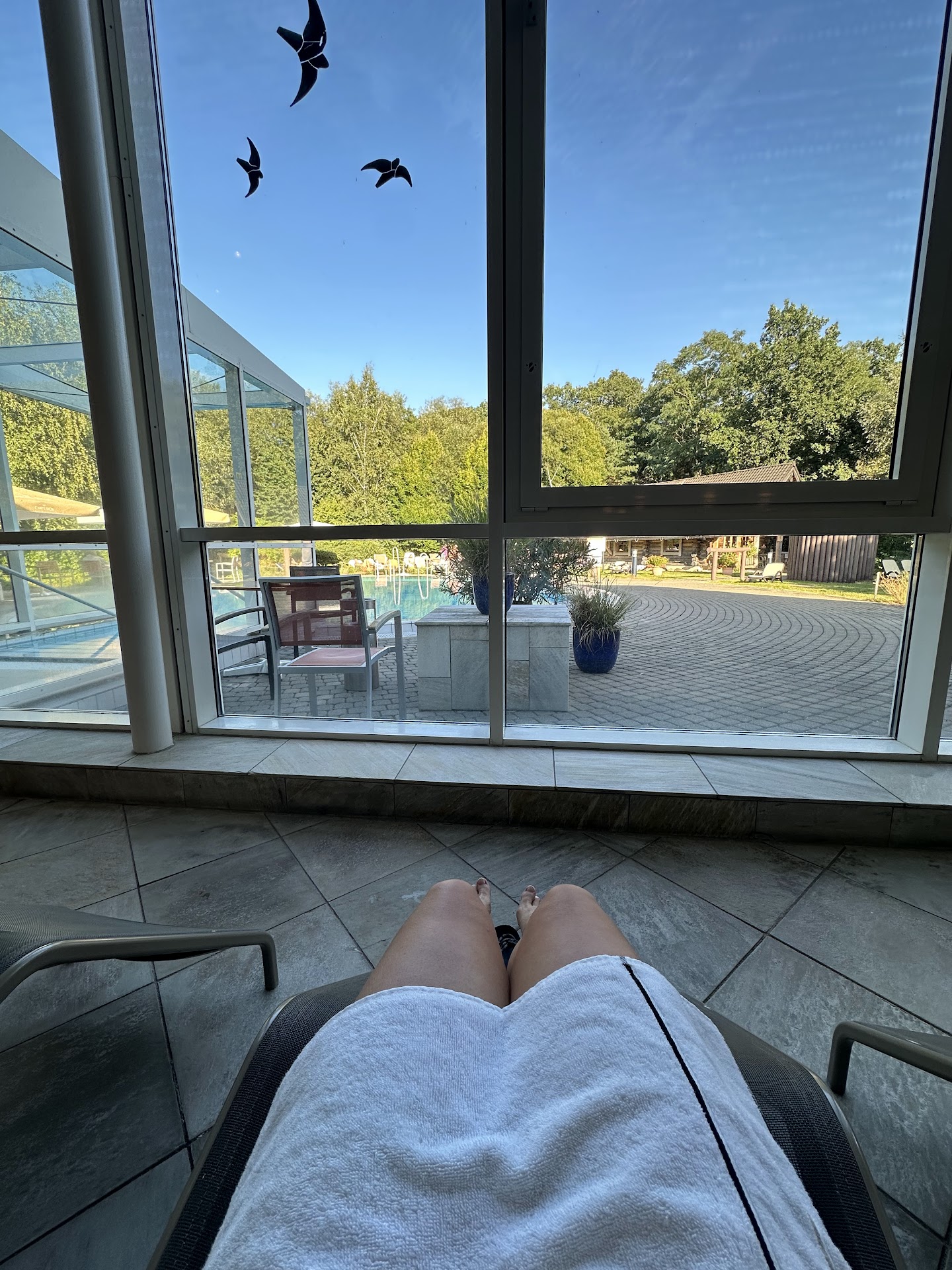 This place is nice. Not crowded, you can find chaise-lounges inside and outside. Inside it’s warmer when it’s 22’C. It has pools inside and outside, multiple saunas, showers near saunas and in the toilet. People walk and rest here naked, you don’t need a swimsuit, you can use a towel. Mostly people are aged. Slippers are necessary. You can buy here : towel, deserts, fruits, beer. Water (gas, still and cold) is for free if you pay 4€ deposit for a glass. 196 bus goes from Leipzig every hour, stops...