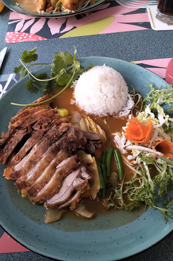 Die Ente war perfekt zubereitet, saftig und hatte eine knusprige Haut. Der Geschmack war einfach umwerfend. Dazu wurden die gebratenen Nudeln serviert, die eine wunderbare Kombination ergaben. Die Nudeln waren schön gewürzt und hatten eine angenehme Textur.