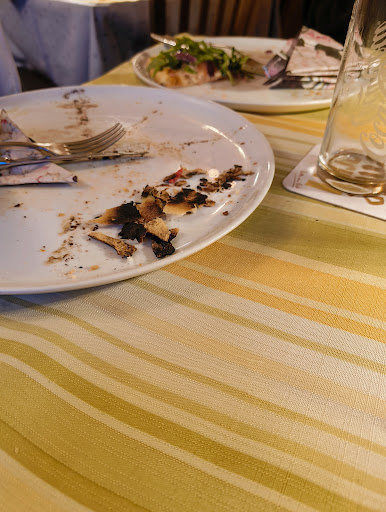 Getoppt wurde es leider nur noch dadurch, dass nach ein paar Sekunden wo das Essen auf dem Tisch stand, der Inhaber kam und den Vegetarierer bei uns aus der Gruppe sehr unfreundlich und bestimmend darauf hinwies, dass er nicht das bestellt hätte, was auf dem Tisch steht. Nachdem unser Vegetarierer ein paar Mal gesagt hat, dass er das Gericht bestellt hat sagte er "gut dann essen Sie weiter". Auf eine weitere Nachfrage was denn darin sei, sagte er nur "Speck". So etwas geht absolut nicht.