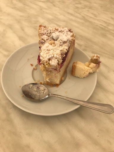 Die Bilder dürften für sich sprechen. Kuchen wurde mit dem Unterteller für eine Kaffeetasse mit Löffel serviert. Der bestellte Cappuccino wurde serviert, nachdem der Kuchen schon verzehrt war.