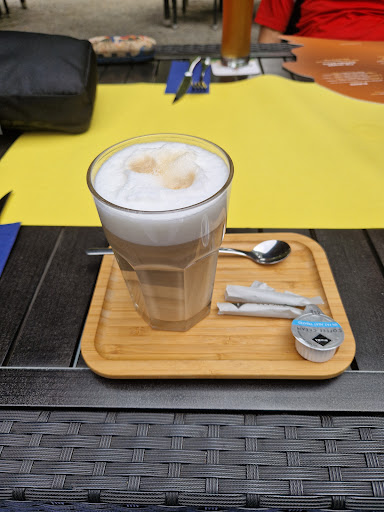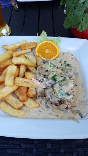 Read moreMan kann gemütlich draußen sitzen. Wir waren mit Hunden unterwegs und waren 6 Personen. Wir bestellten Salat 3x mit toping Hähnchen, Garnelen und einmal normal. Der salat hatte schon ein paar dunkle Stellen, die versucht wurde mit Soße und dunklem basalmico zu überdecken. Die belgischen Pommes, sind einfach nur dicke Pommes aus dem Großmarkt. Gemacklich mehlig und ekelig. Das Schnitzel ( zwei auf dem Teller) war mehr Panade als Fleisch. Das Preis- Leistung stimmt hier in keinster Weise. Der Beilagensalat war fast so viel wie der angebotene salat. Essen leider nicht gut. Getränke preislich ok. Dafür das es ein Sonntag und auch noch zur Mittagessen zeit war. Waren wir zum Essen die einzigsten. Das hat uns schon gewundert. Fazit : Essen 👎 Preise Essen: 👎👎 Preise Getränke:...